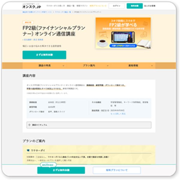 FPの勉強は、内容の難しさよりも、最初の数日をどう乗り切るかで流れが決まりやすいです。オンスク.jpは、その最初の数日をかなり軽くしやすい講座です。